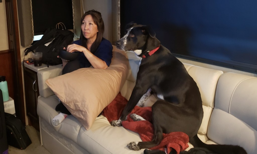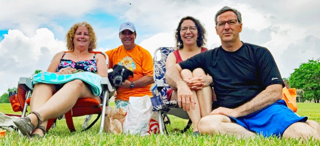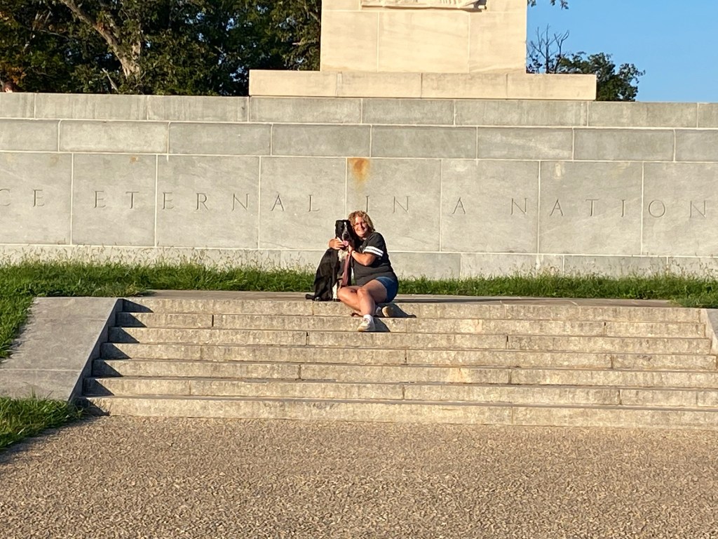 Having had a good taste of U.S. History in Gettysburg, we headed to Washington D.C. for a bit more! We stayed in a lovely County park in Reston, Virginia, where Pongo had the time of his life traipsing through the forest in search of all kinds of furry critters! He and I got to bond even more than usual during this stay because David had to fly back to L.A. for a few days for work, so we had a blast just hanging out together! While he was gone, I was thrilled to have a visit from one of my high school friends, Julia Alexander. We haven’t seen each other since graduation, so needless to say there was a lot to catch up on! Once David was back, we managed a get-together with some dear friends Breen & Renny Berger who moved to VA years ago and wasted no time catching up on all the happenings of the past several years.