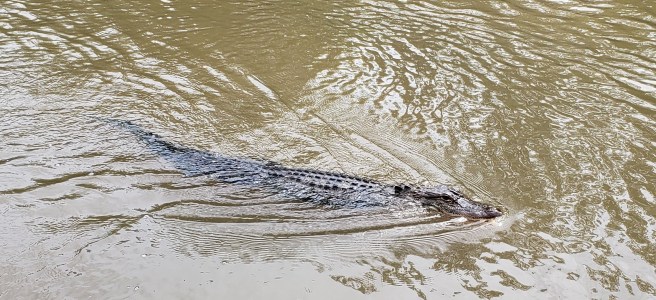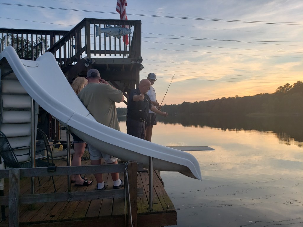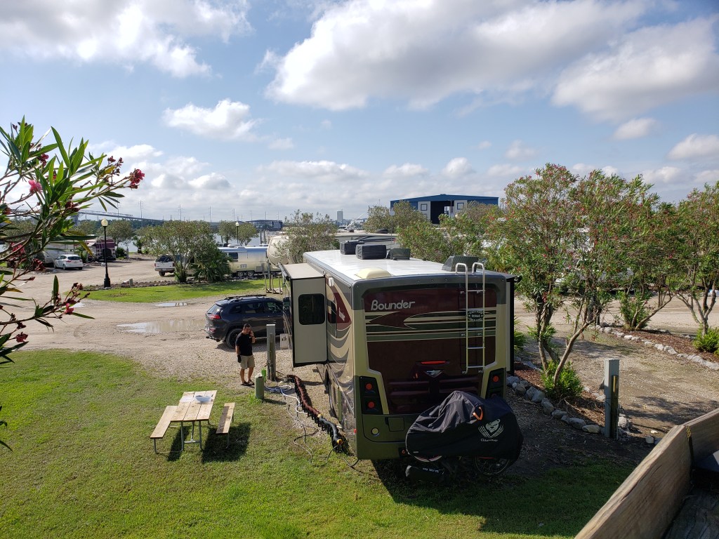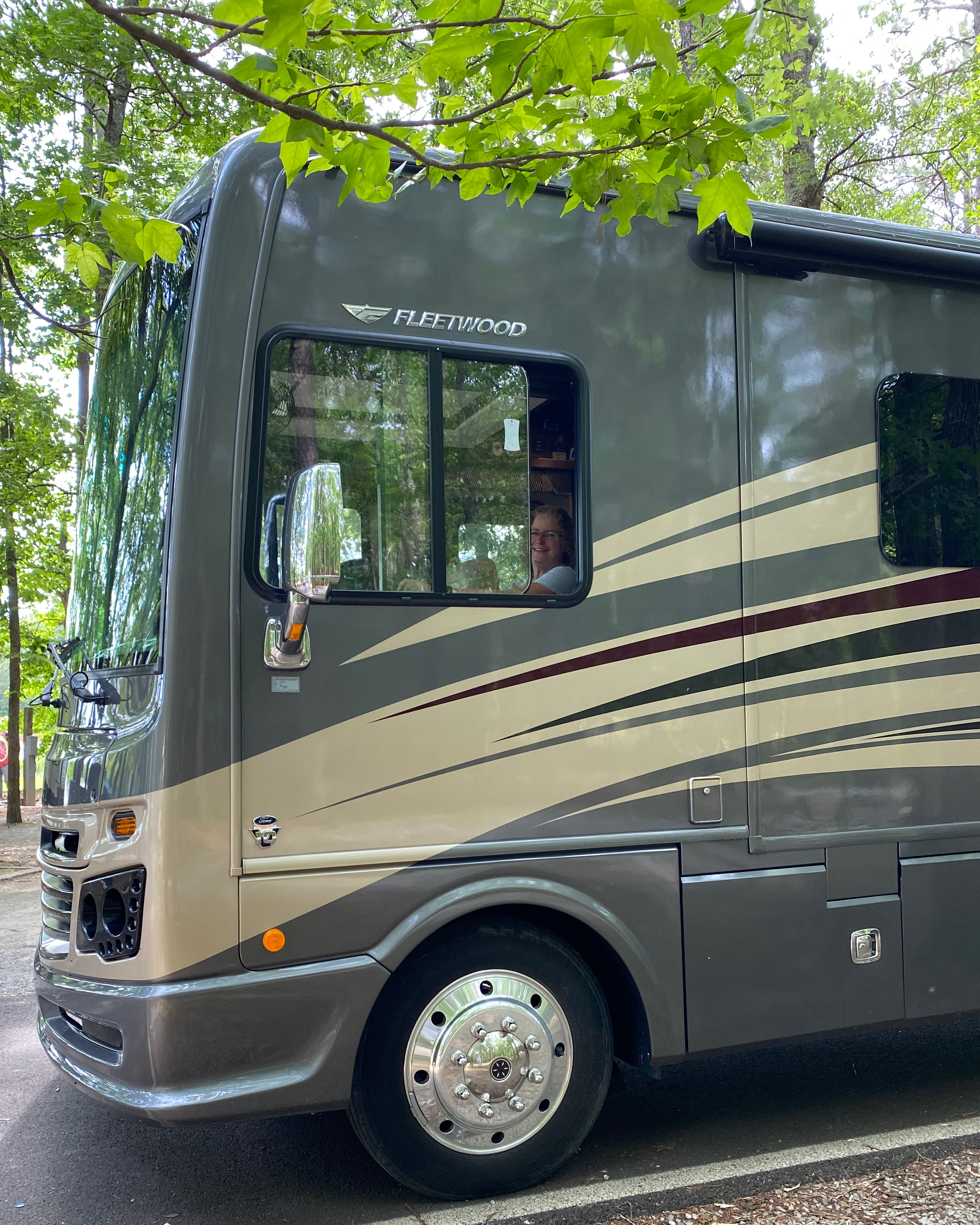 We next turned the Bounder inland and stayed at one of the nicest Boondockers Welcome locations we’ve seen to date. It is right on a lake in Roanoke Rapids, NC, and the host has a dock, kayaks, fishing equipment, and just about everything you could ever need to enjoy life! The host came out and helped David catch a catfish, (which we promptly tossed back) and later treated all of the guests to a delicious barbecue chicken dinner. We were sad to leave this one, but were so thankful to have found it!